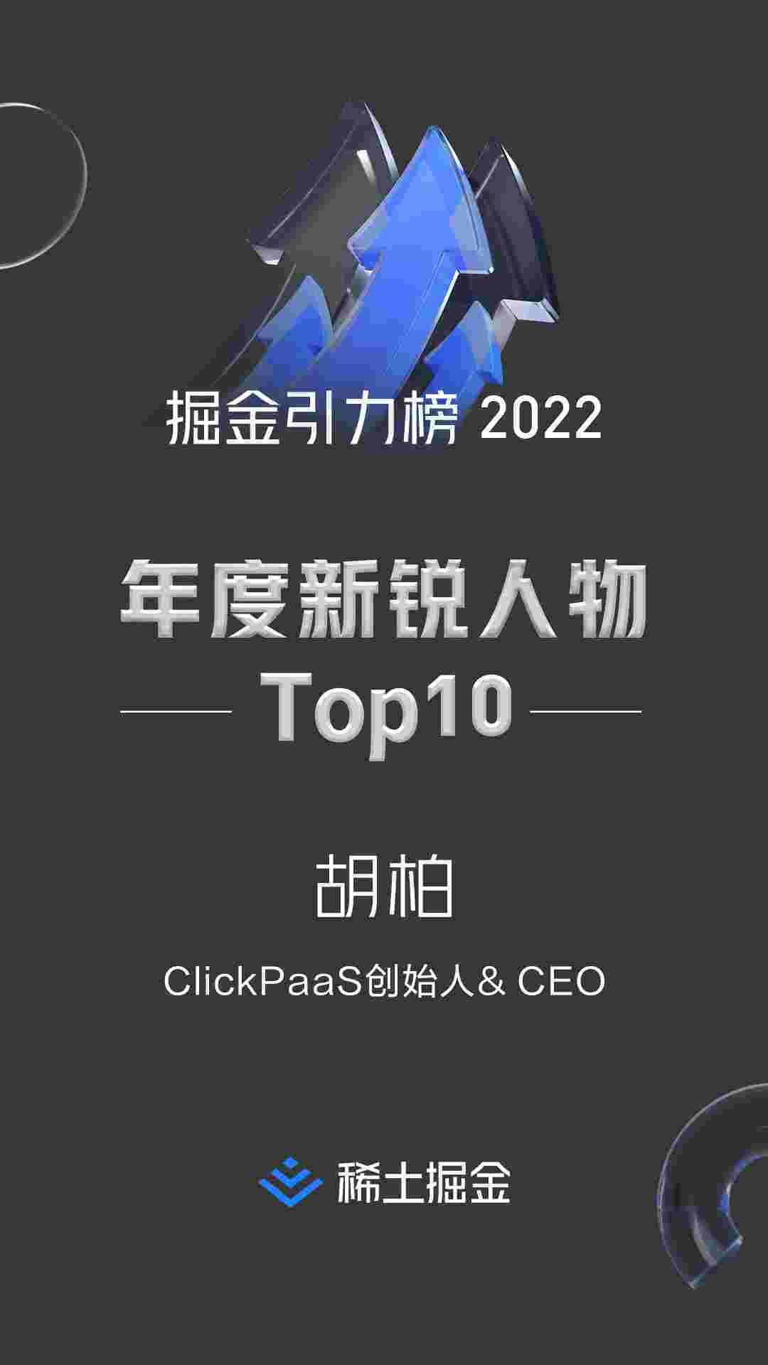2022年1月6日,,,稀土掘金社区第一届「掘金未来大会」成功举办,,会上发布了“2022 稀土掘金引力榜 年度新锐人物”榜单,,,上海爱湃斯科技有限公司(简称VIVO钱包)创始人及CEO胡柏实力入选年度新锐人物TOP 10。。